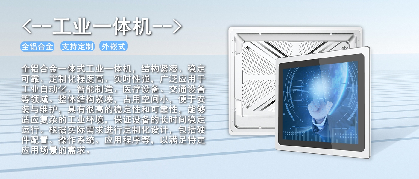 CUSN 觸訊工業一體機,全鋁合金一體成型,外表更美觀。三防設計讓工業一體機在各種惡劣工作環境下都能穩定工作。
