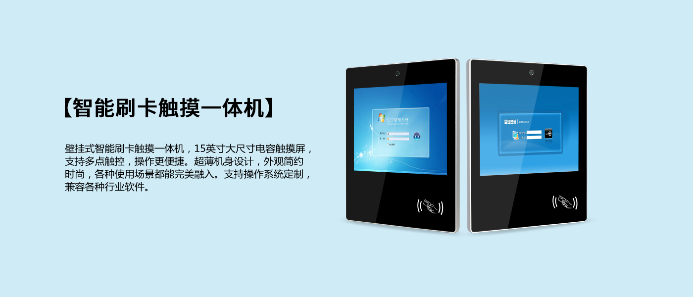CUSN 觸訊超薄智能刷卡觸摸一體機,全封閉式處理,支持各種刷卡認證,刷卡消費等需要刷卡的場景使用。
