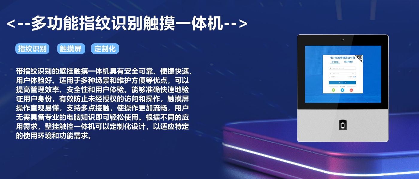 CUSN 觸訊多功能指紋識別觸摸一體機,全封閉式處理,支持指紋識別認證,適用于身份識別等應用場景。
