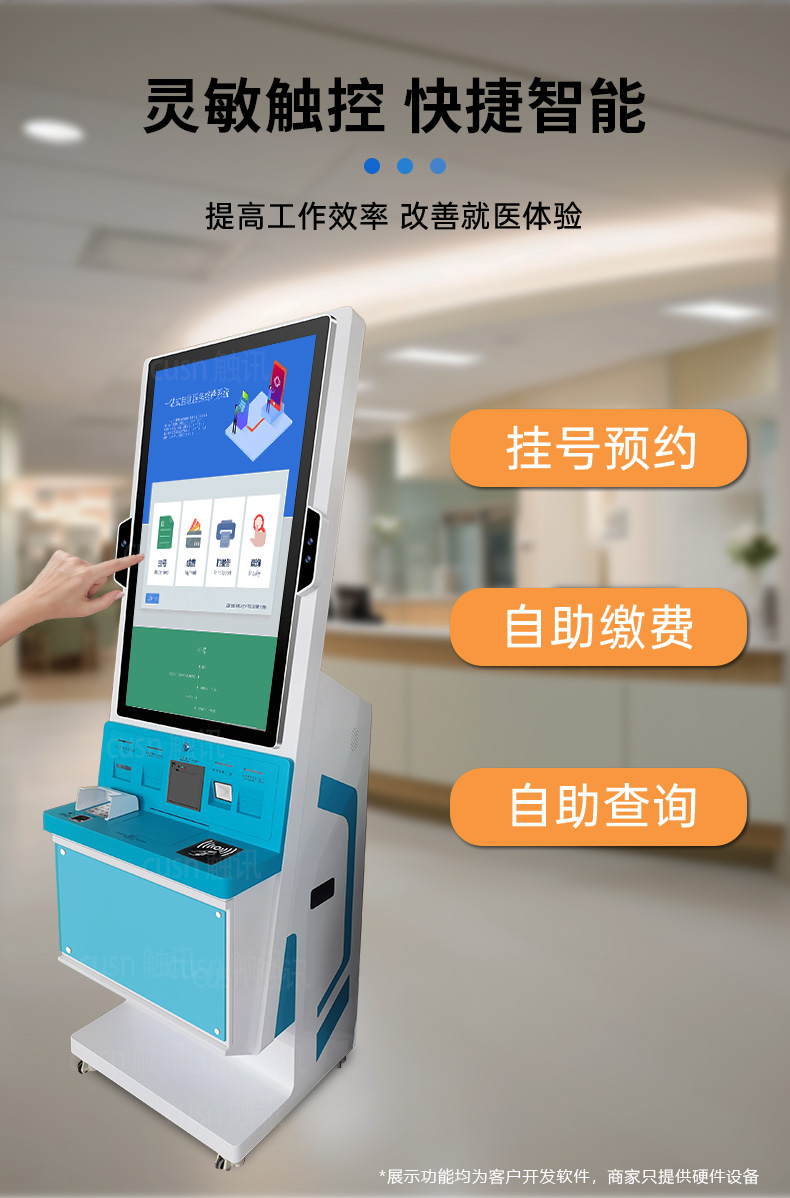 觸訊43寸自助終端機(jī)以高集成度、智能化、穩(wěn)定可靠為核心優(yōu)勢,助力醫(yī)院、銀行、政務(wù)等行業(yè)實現(xiàn)服務(wù)數(shù)字化升級。其模塊化設(shè)計、多功能擴(kuò)展性及人性化交互體驗,使其成為智慧城市建設(shè)的理想終端設(shè)備。未來,觸訊將持續(xù)優(yōu)化產(chǎn)品,推動自助服務(wù)向更智能、更便捷的方向發(fā)展。