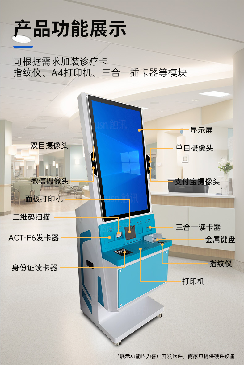 擴(kuò)展功能:可選配身份證識別、掃碼支付、指紋驗證、發(fā)票打印等模塊,適應(yīng)不同業(yè)務(wù)需求。