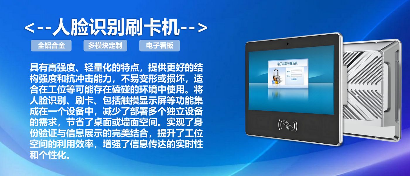 鋁合金人臉識別刷卡機的優勢及作為工位機看板的優點如下: